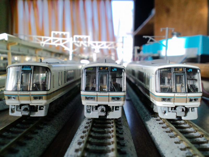 左から旧B3、B18、A1編成です。やっぱり221系はいいなぁ・・・。