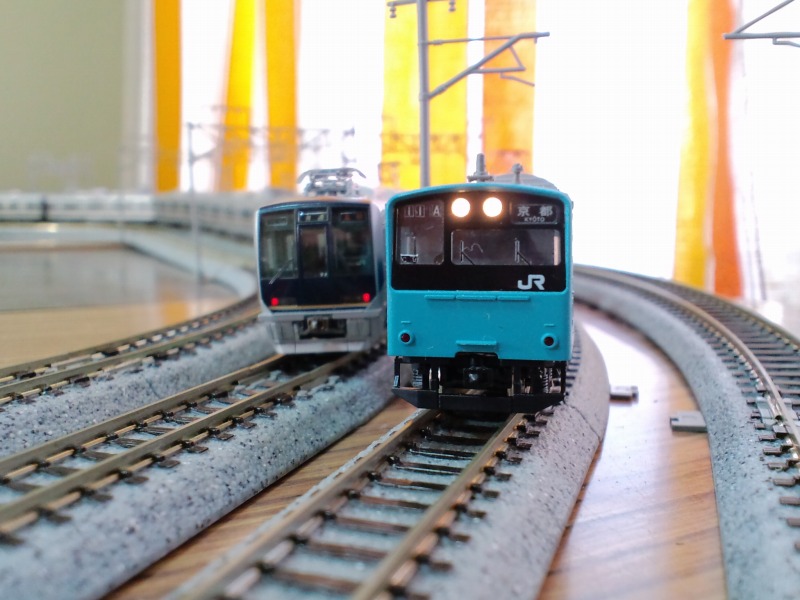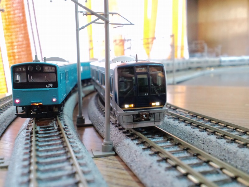 続いて本線の新旧緩行線コンビ。201系カッコいいなぁ・・・。