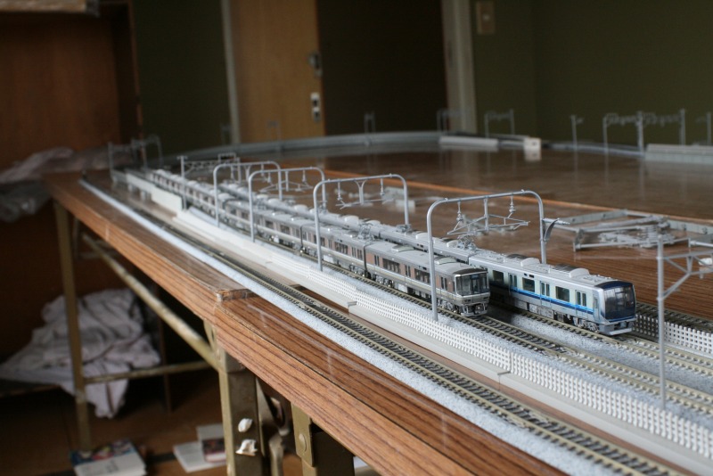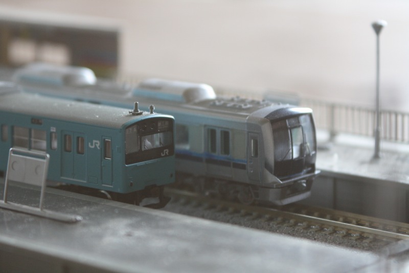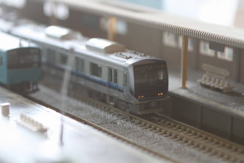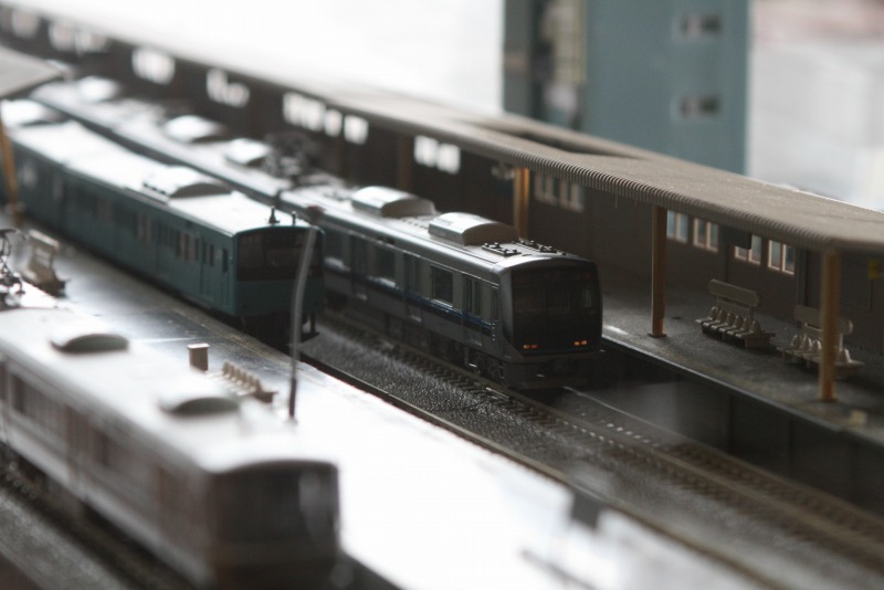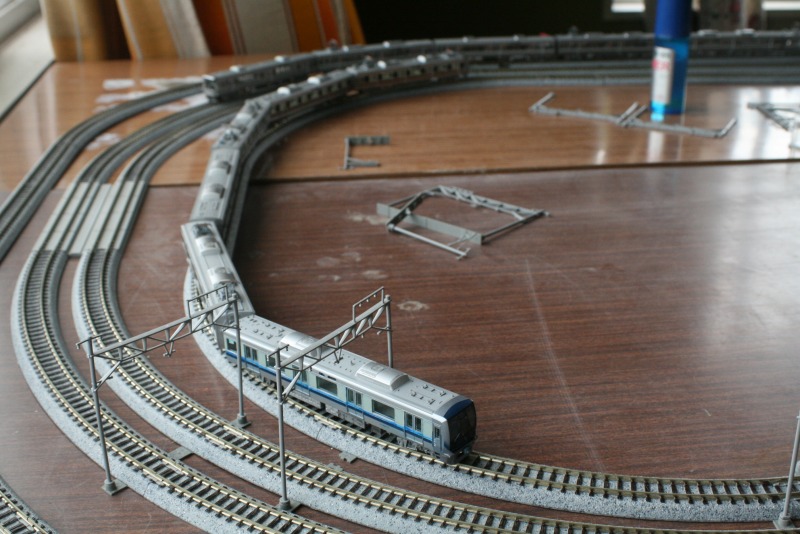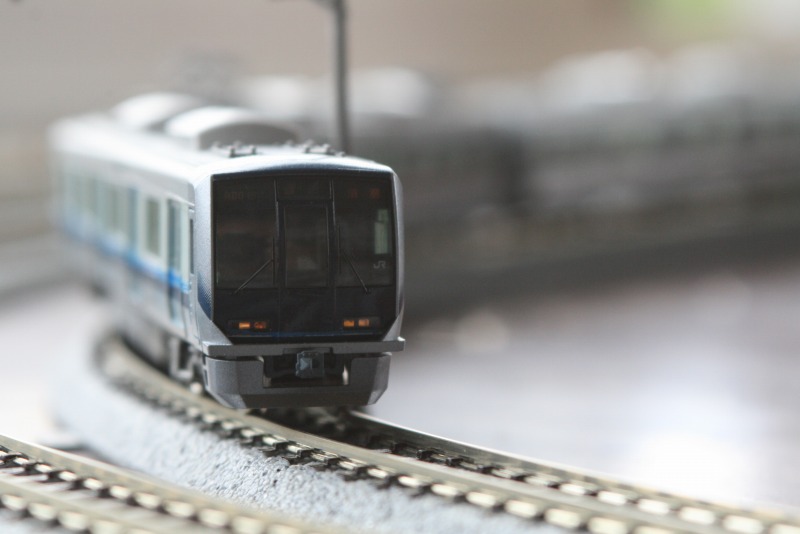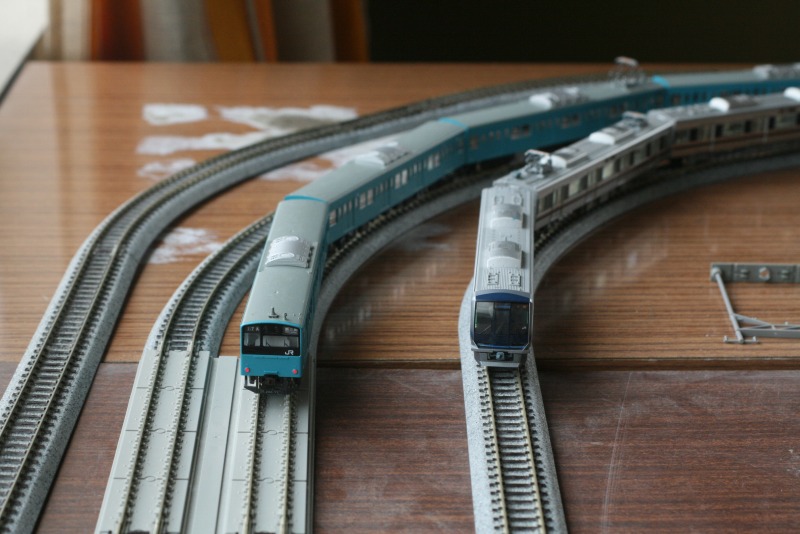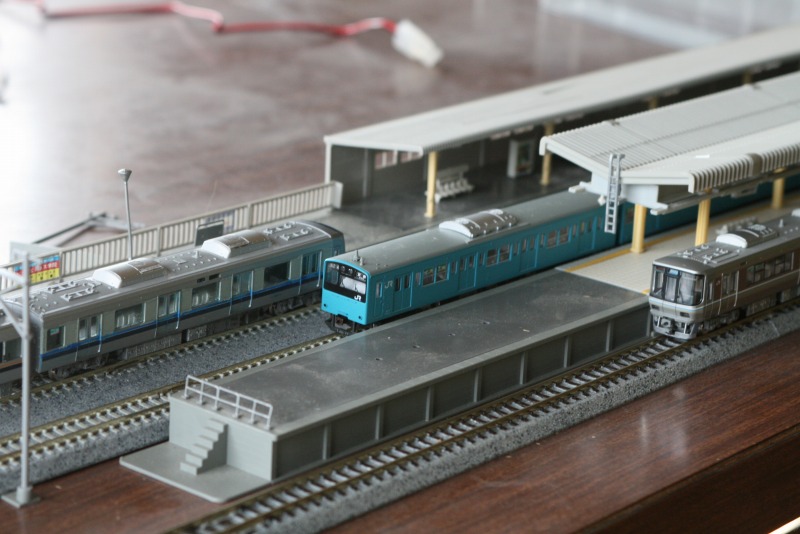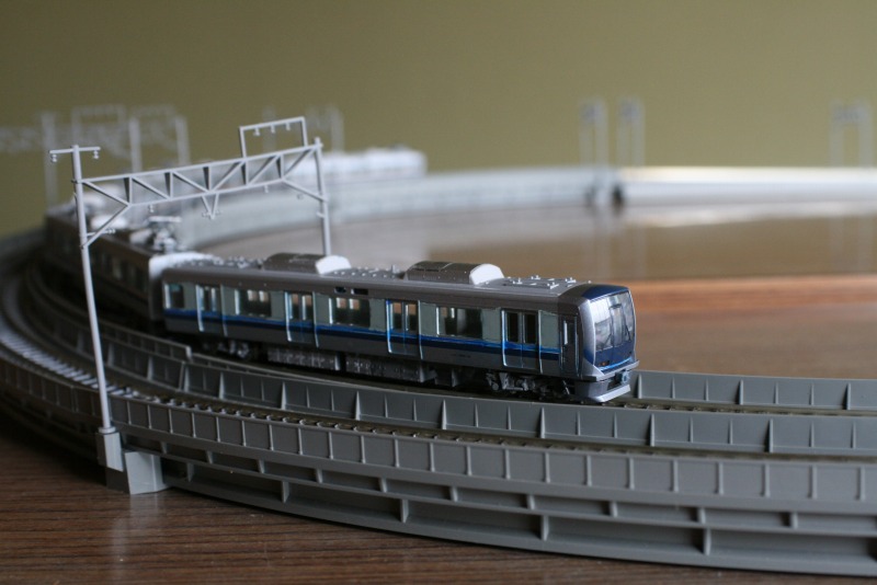 駅手前の直線部分で。窓周りは銀色を塗らず灰色を。