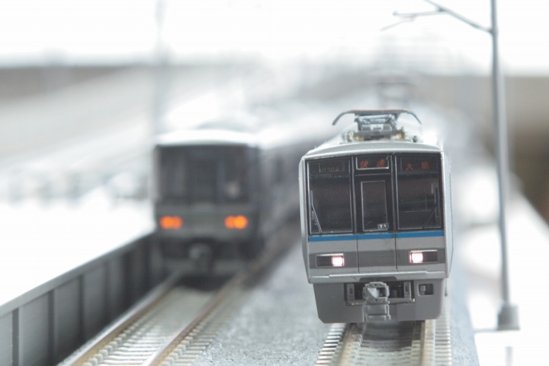 朝にたまに見られる尼崎~大阪間での並走バトルを再現してみた一枚。
