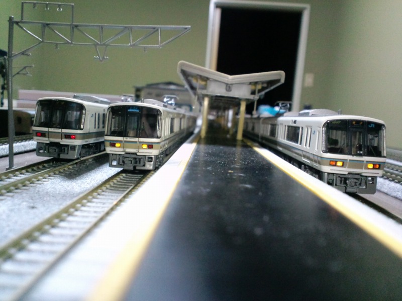 別の日。在籍する221系3編成を並べてみました。傾いているのはご愛嬌・・・。