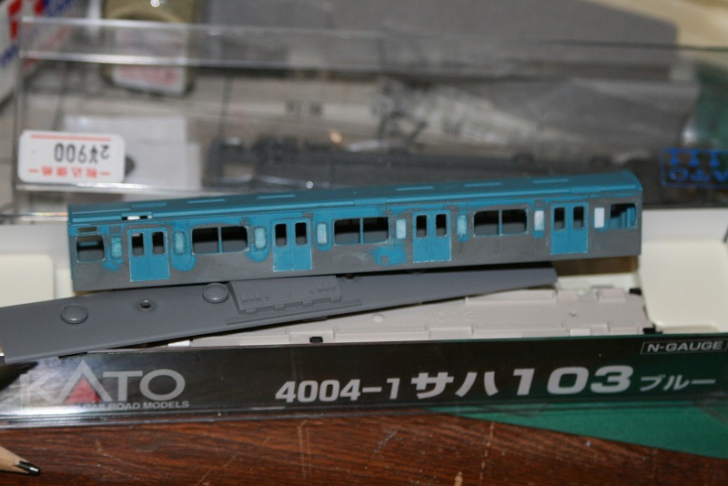 一部金属やすりで削ってしまって傷が出来た部分(ドアの上とか)は、瞬間接着剤で埋めています。