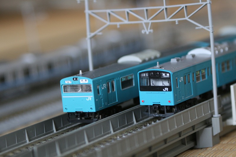 高架区間では201系原型車とのすれ違いも…。懐かしい…。