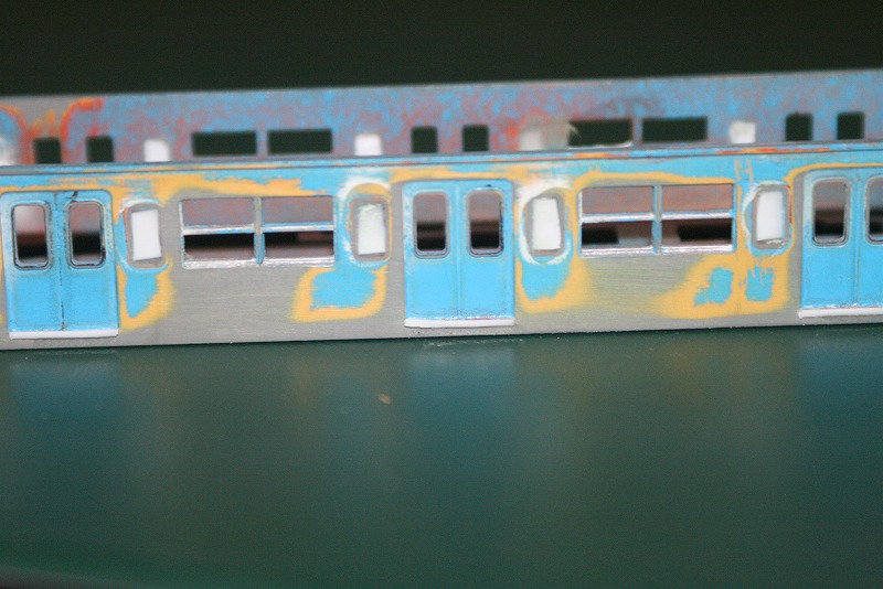 前回戸袋窓埋めが終了したクハ103-128ですが、今回は戸袋窓埋めの際に削り落とした靴ずりを再生させました。