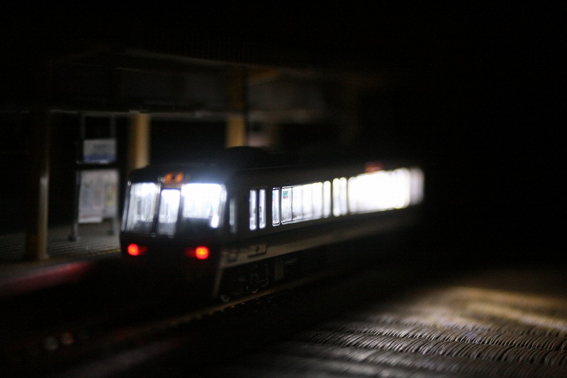夜の駅を出発していく大阪行き快速をイメージしました。