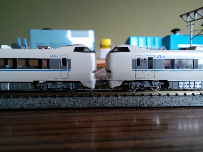 T編成とR編成の連結面。3連のT編成が手に入ればオール683系の12連が組めます。