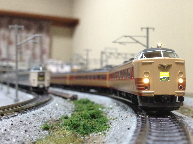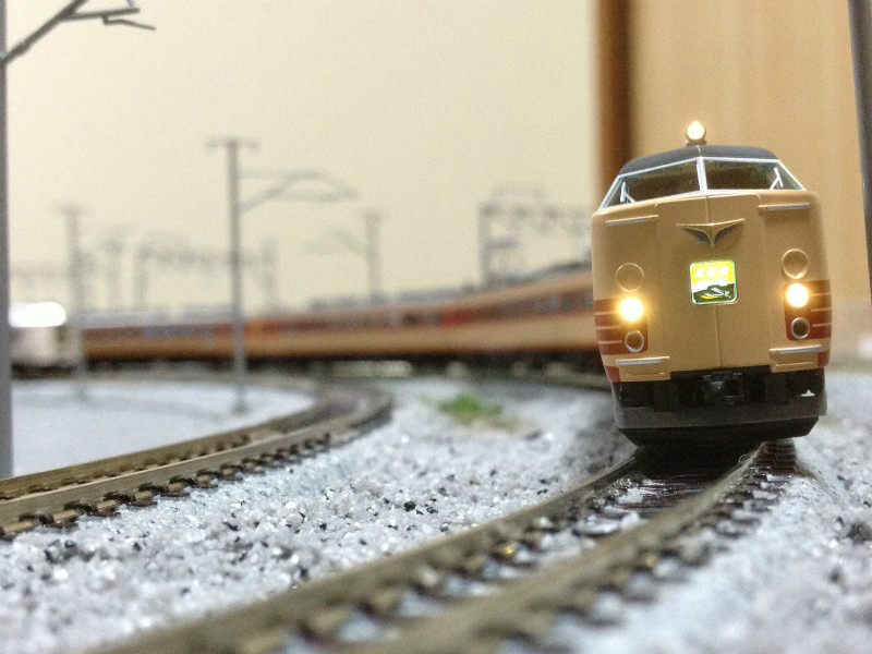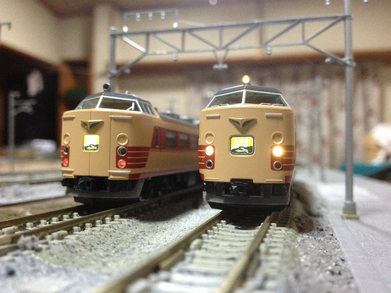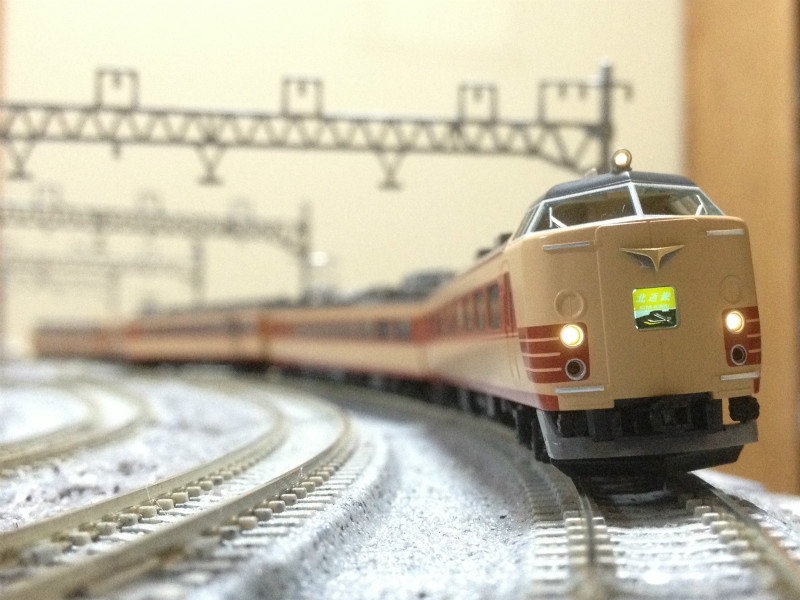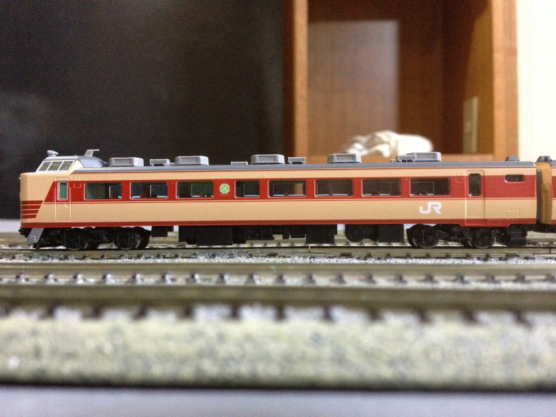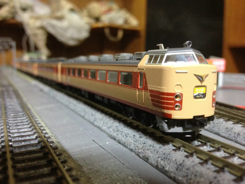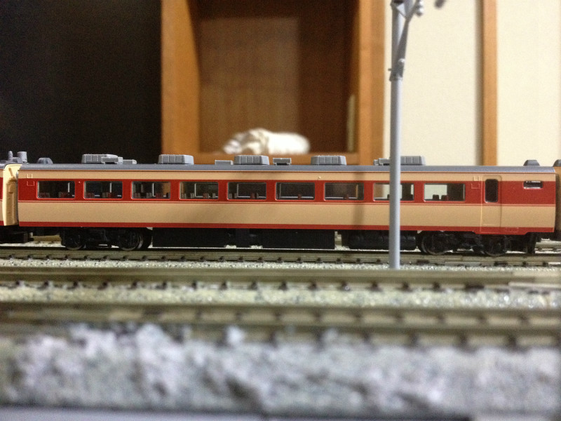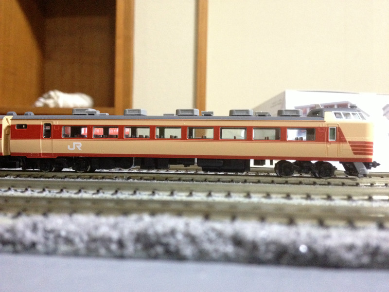 モハ484-0。時代設定が昔なので485系の初期モハユニットがついています。