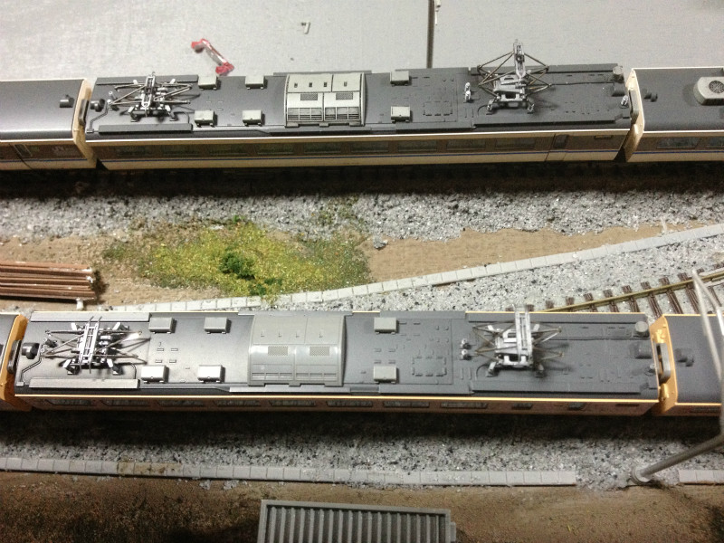 「たんば」セットと屋根を比較。パンタグラフの形態が違うようです。