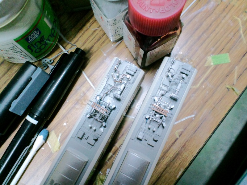 動力車です。座席、室内、床下機器の銀色化をやり直しています。