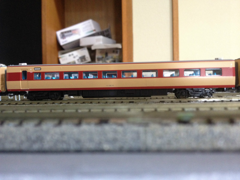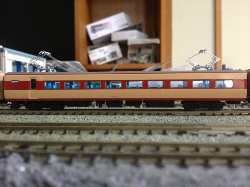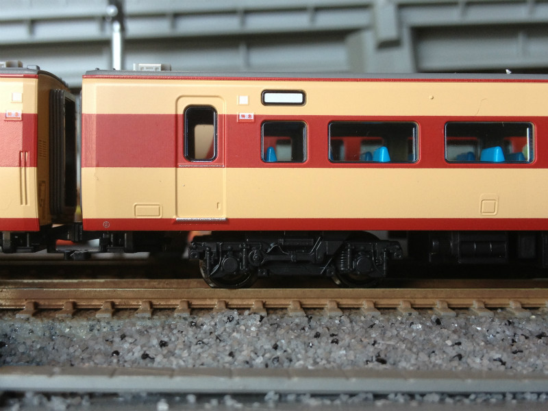 特急サボは国鉄仕様のものを印刷済み。ドア窓下のドアレールにも銀色が入ります。