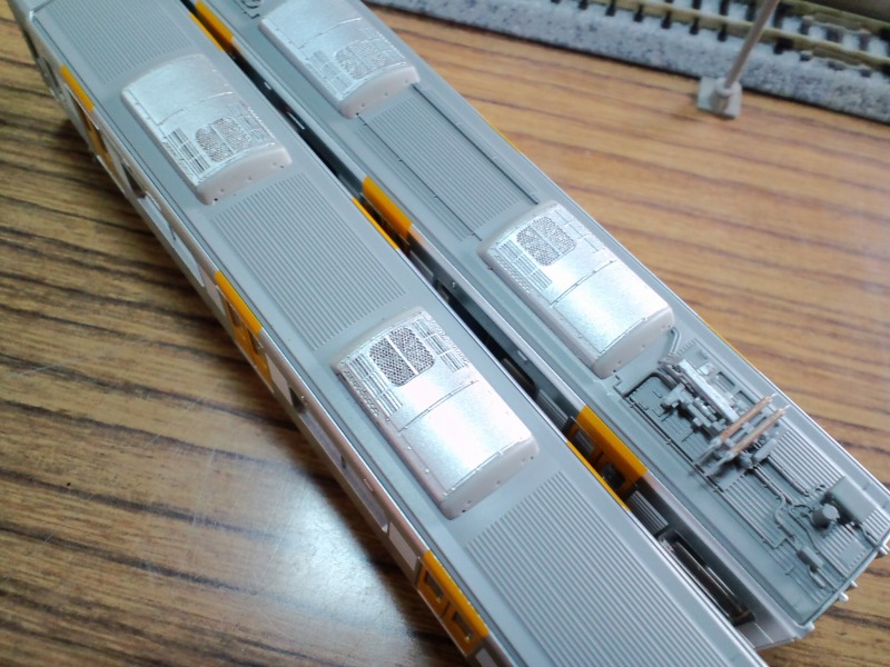 アンテナやヒューズ箱、列車選別装置などは一度スプレー塗りをしてプラの地肌を目立たなくしてます。