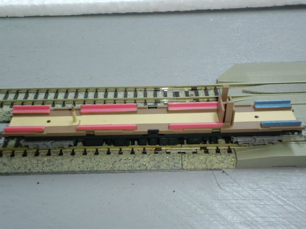 スカートの再塗装と列車選別装置の色差し、連結器の色差しを行いました。