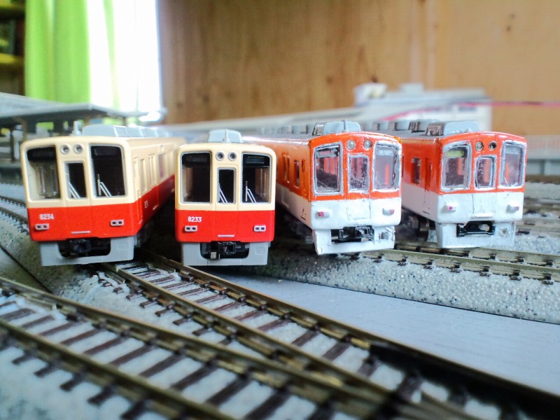 前面。比較用に自作の8000系を置いてみました。自作更新車が一気に霞んで見える(苦笑)