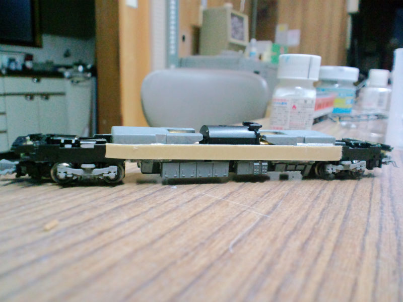 床下機器はそのままでは付かないので厚みを削って貼り付けています。