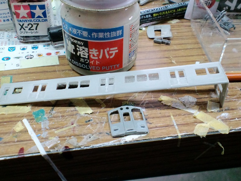 8212の前面と車体。溶きパテの剥離対策として前面だけ一回塗装をしてみました。