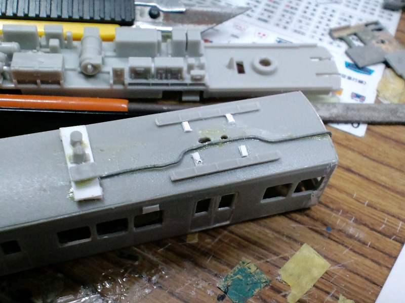 実車写真を参考に配管は針金で、各小パーツは阪急キットから使えるものと写真紙で作っています。
