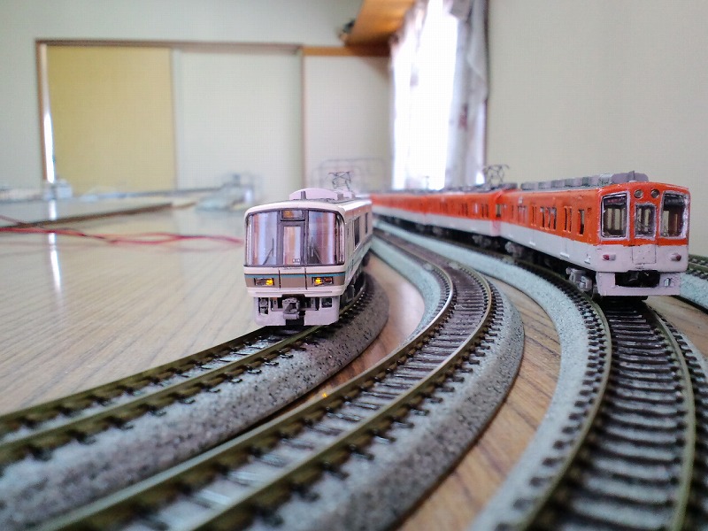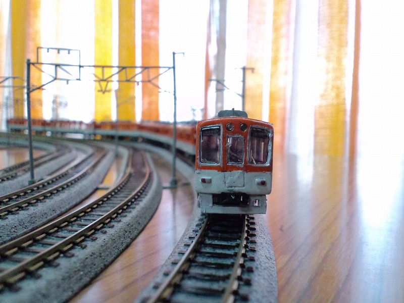 実際の風景にはないでしょうが複々線風の大カーブにて。