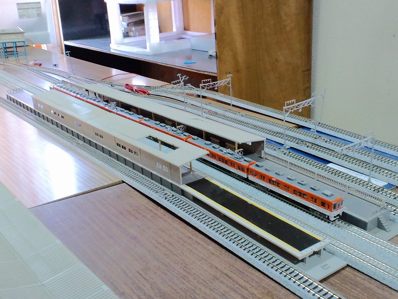 JR車用の12連対応ホームだと6連の阪神電車には似合わないので余剰のホームをかき集めて6連限界の対向式ホームの駅を作りました。実物らしくホームいっぱいに止まるのでいい感じです。