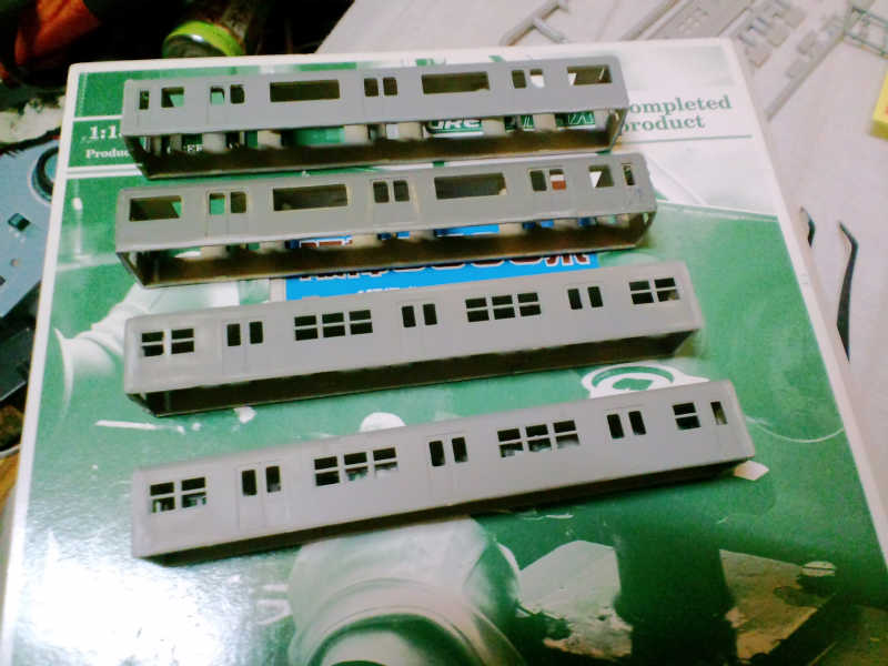 前面窓ははめ込み窓が在庫切れで買えなかったので部品箱を漁ったら201系30Nの妻面ガラスを発見。