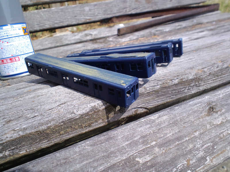 阪神キットの指定は確か青20号ですが今回は在庫がなかったので近鉄ブルー(特急車用)を使ってみました。