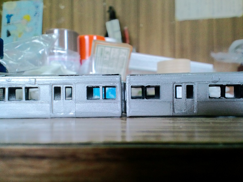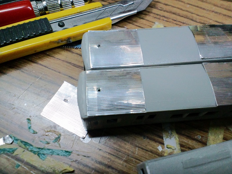 続いて幅をつめたために窓枠がなくなった先頭車の小窓の窓枠を同じ方法で復活させます。
