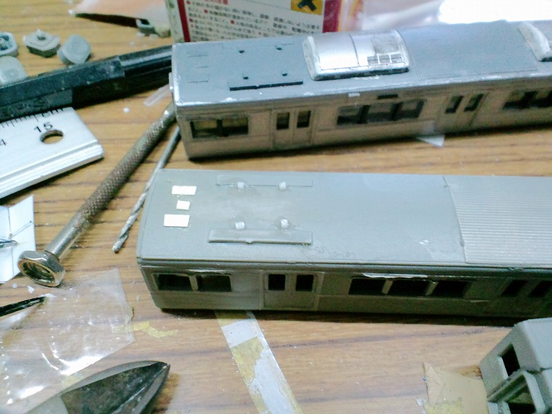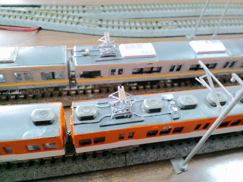 屋根上機器も置いていきます。パンタあり車はヒューズ箱用に配管をカットしました。