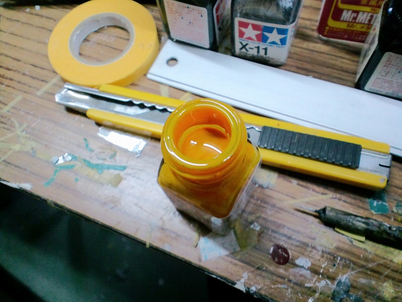 色はレモンイエローをベースにクリヤーオレンジ、クリヤーレッド、クリヤーイエローを混ぜてオリジナルの色を作りました。