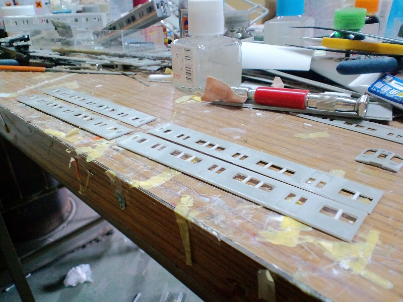 側板も準備完了。窓にプラ棒を挟む作業が一番嫌いです(苦笑)