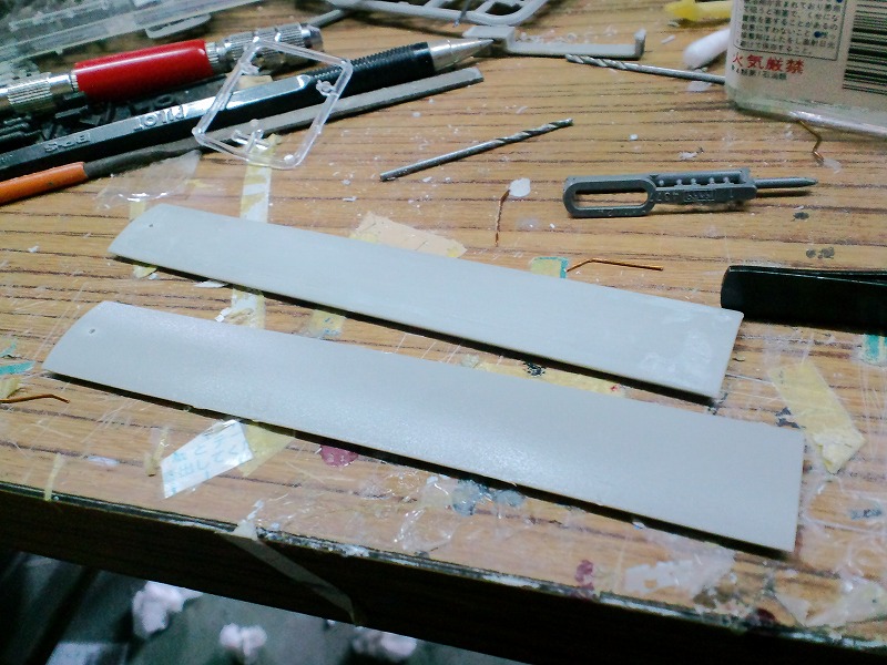 まず金属ヤスリ(模型用)で大まかに削った後紙ヤスリで調整します。