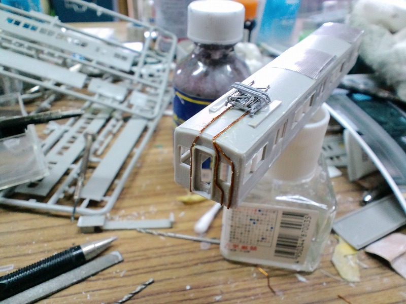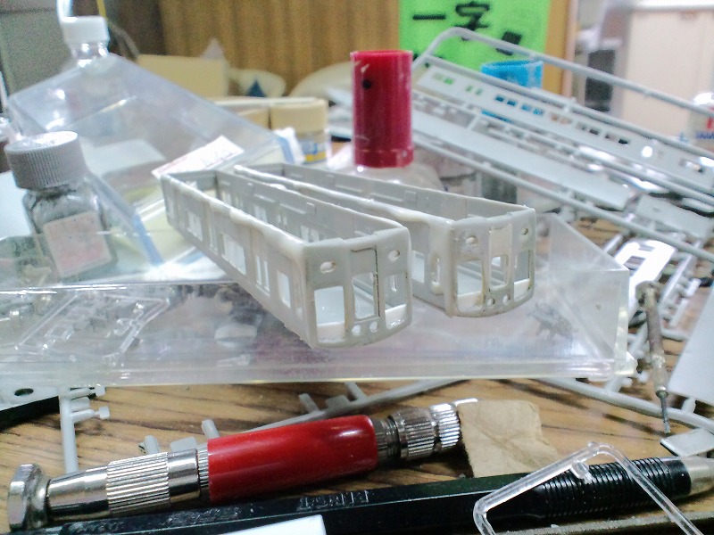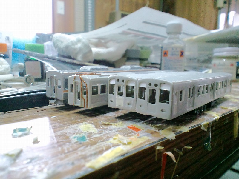写真は動力車となる予定の9103です。前作8000系同様に内側リブを削っています。