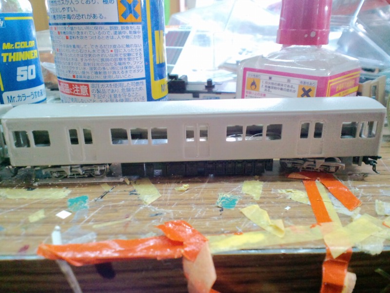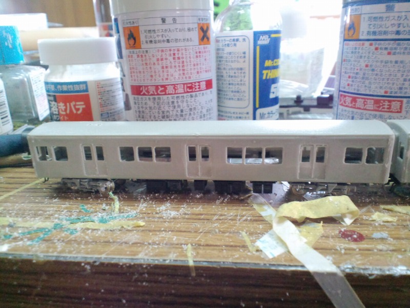 ちなみに車体裾は溶きパテを盛ってキットの丸くなった裾とは違いストレートにしてあります。