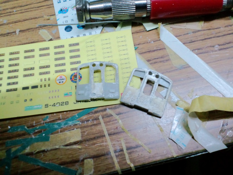 前面には行先表示ステッカーを貼る事が出来るように阪急8000系の前面みたく内側からプラ板を接着しました。