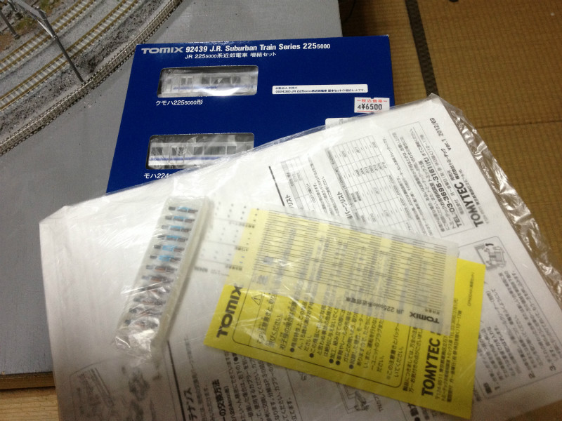 TOMIX225-5000系増結セットと説明書と付属パーツです。