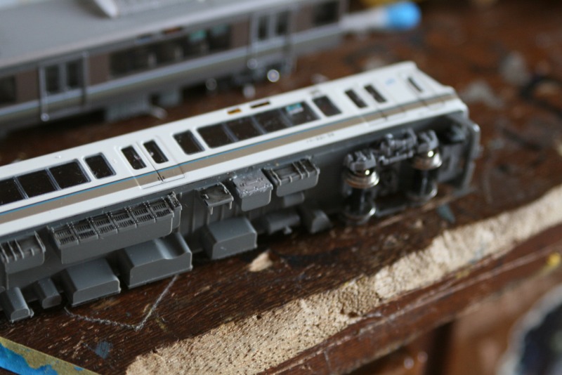 今回は実車にはないモハ223-1000のATS-Pの機器を取り外しました。(2000番台は最初からありません)