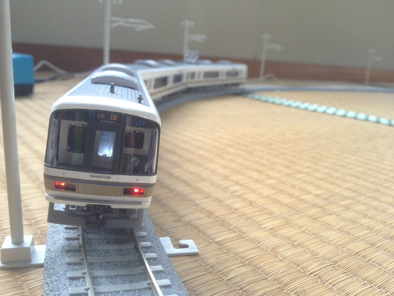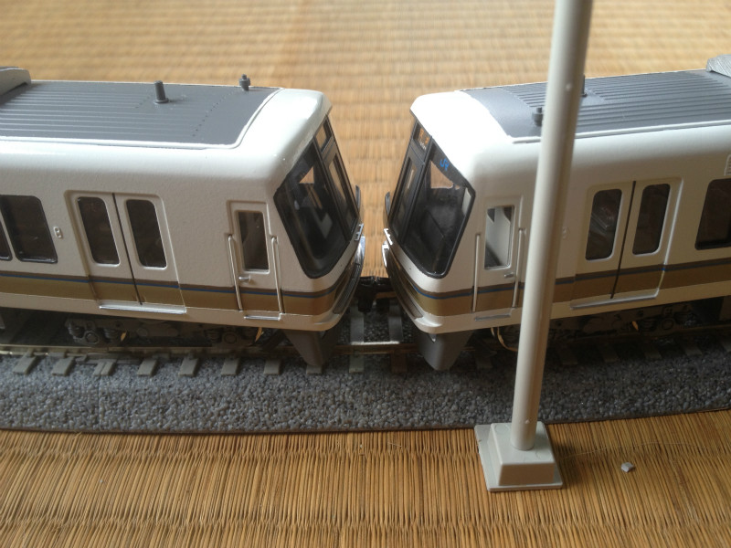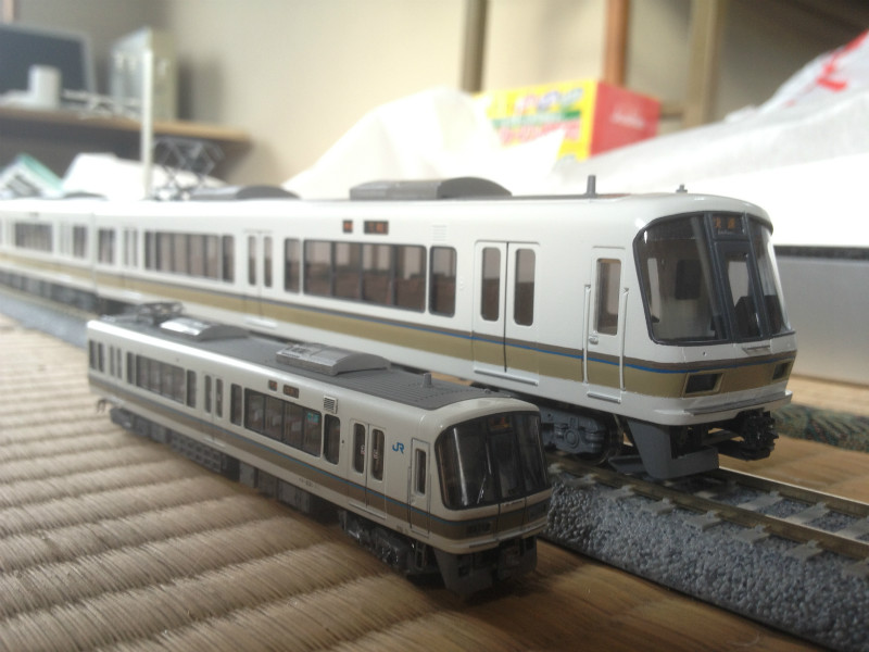 Nゲージの221系と比較。150分の1と80分の1ではここまで差があるんですねぇ。