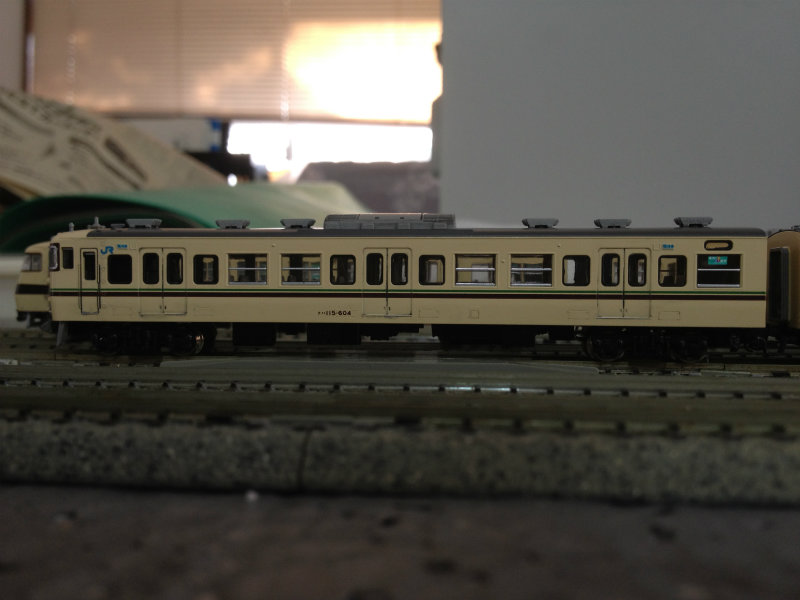 トイレつきのクハ115-604はトイレタンクも装備。もちろんR249のS字も通過します。
