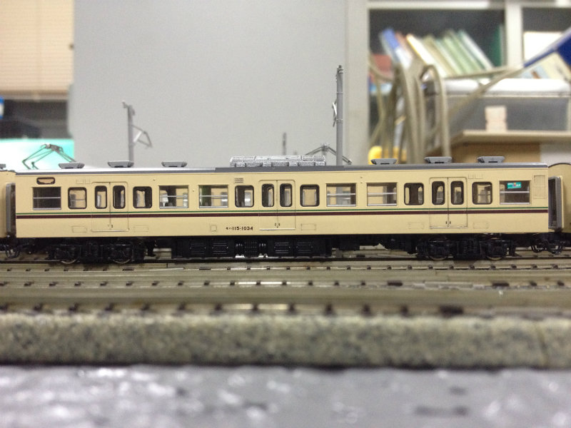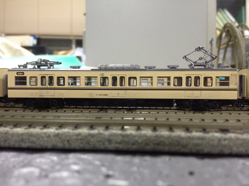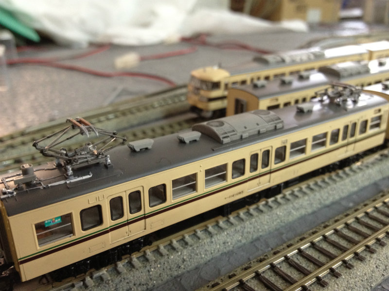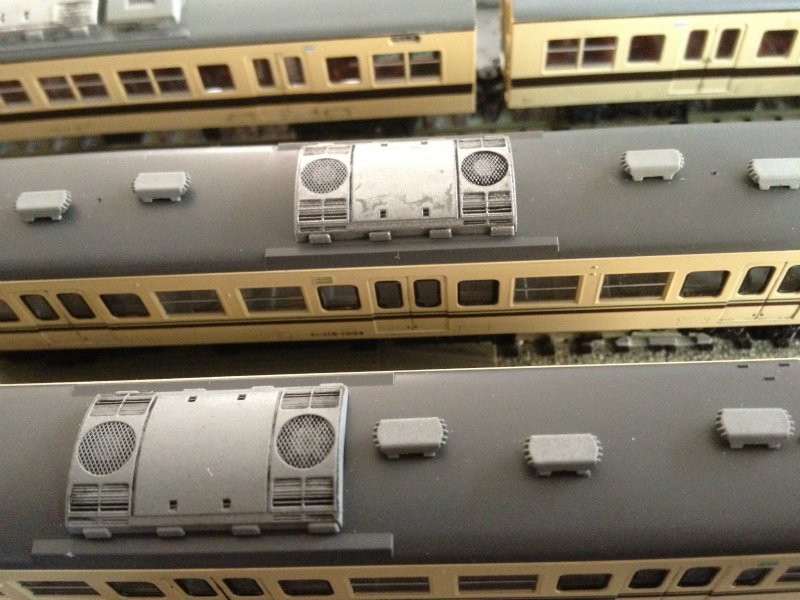 クーラーはモハ115のみAU75Gなので銀色にして再現。塗装が一部落ちてしまった・・・。