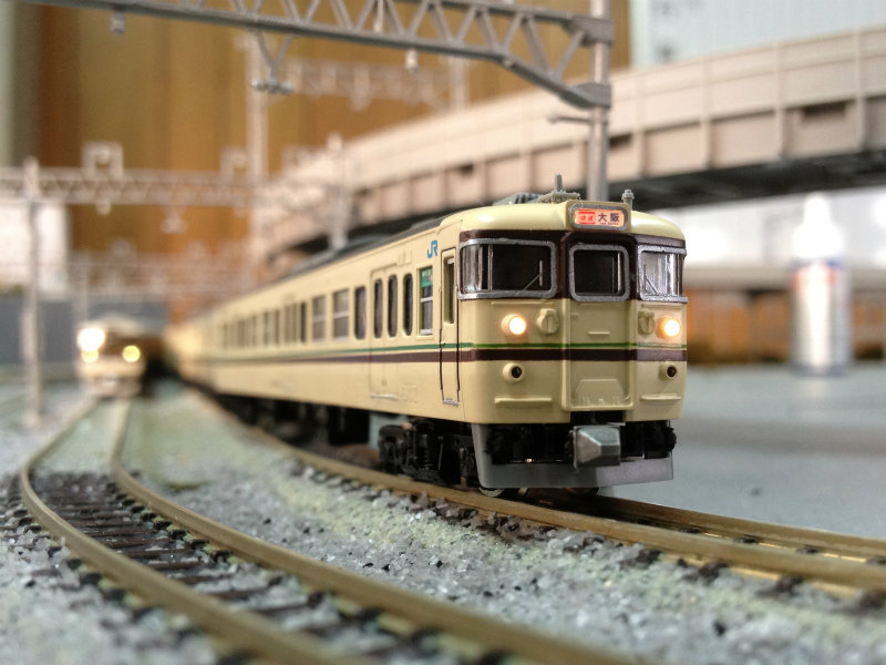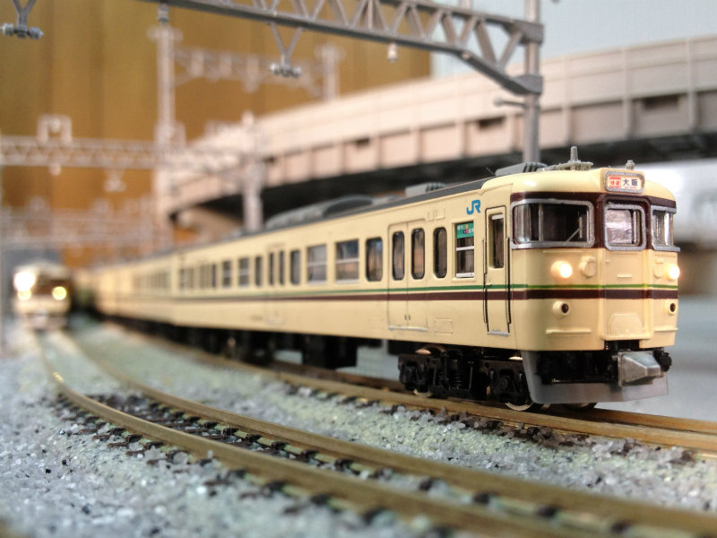 前面。方向幕は快速/大阪と快速/福知山に。この113・115系にはこの国鉄書体の快速幕がイイのです!