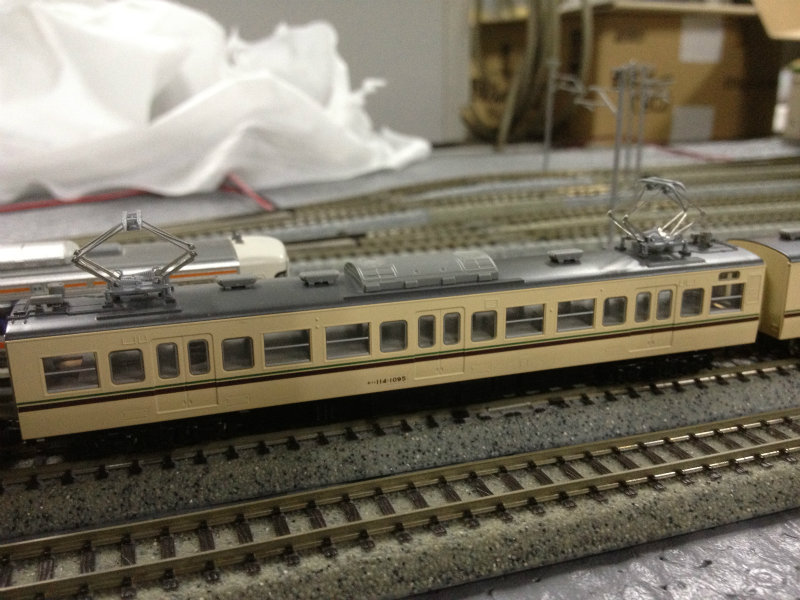 モハ114は2パンタ車です。実際に2基上げていたのかについては疑問が残りますけどね。