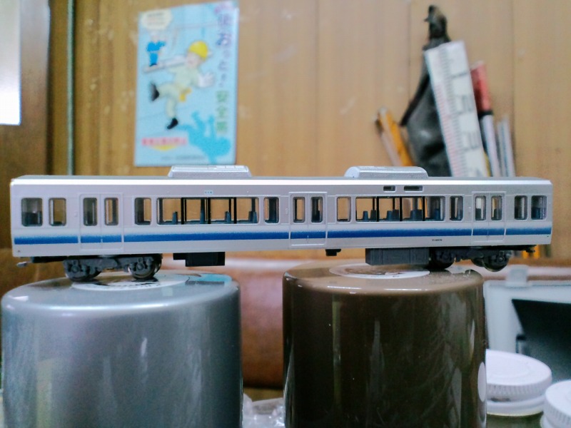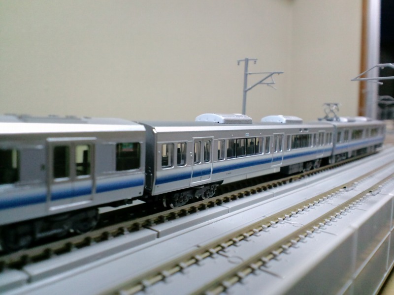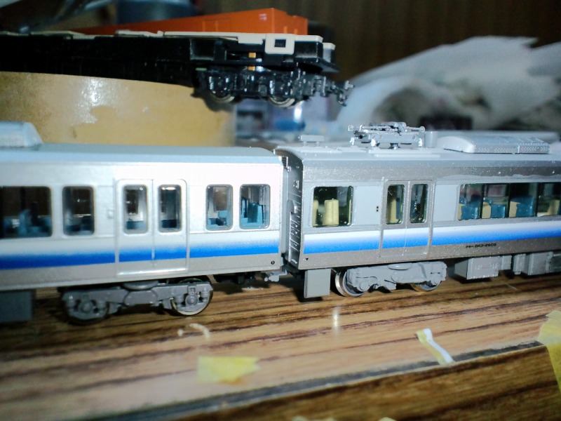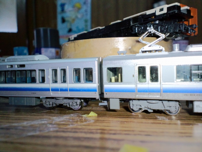 普通なら223-2500系の車高を下げるのが一般的ですけど、うちでは逆にサハ223-0の車高を上げる事にしました。