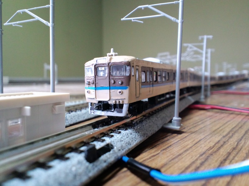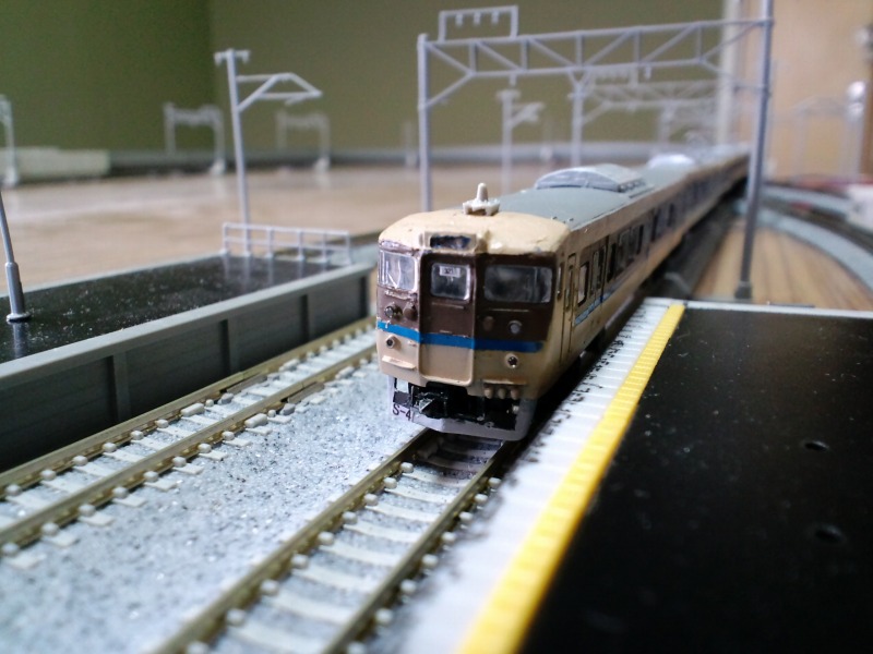 入線シーン。連結器カバーを何とか作ってやろうかなと思っています。