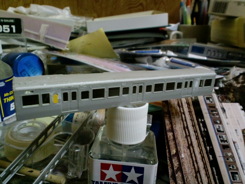 モハ112-6336の車体が完成。後は継ぎ目を埋めて塗装するだけです。