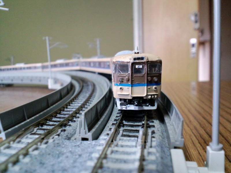 スラブ区間で後打ち。実車なら爆音立てて走る区間ですね。三田近辺とか・・・。