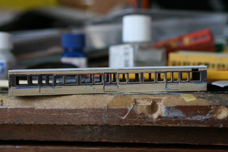 車端部の窓も工夫して縮小する予定です。サイズは若干違いますがドア窓を流用するつもりです。