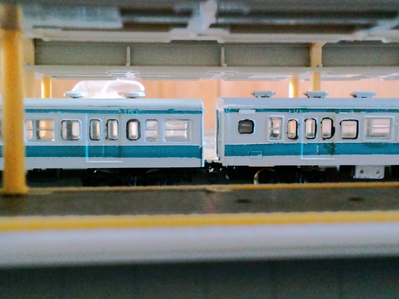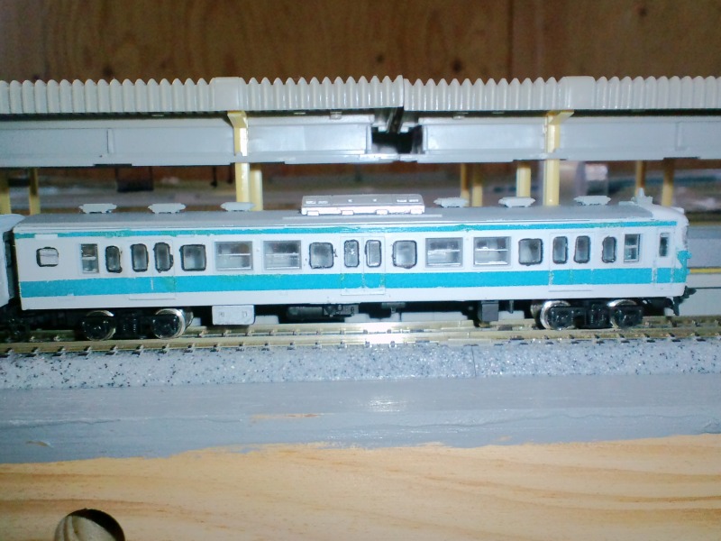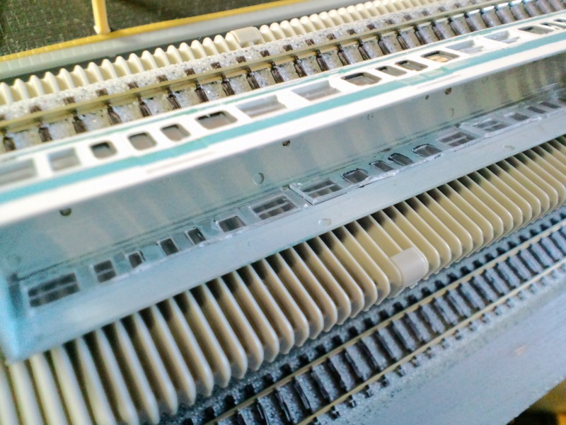 モハ112-5333(動力車)はリブを切り落としてガラス下端を限界まで切り詰めてKATO動力を入れられるようにしています。