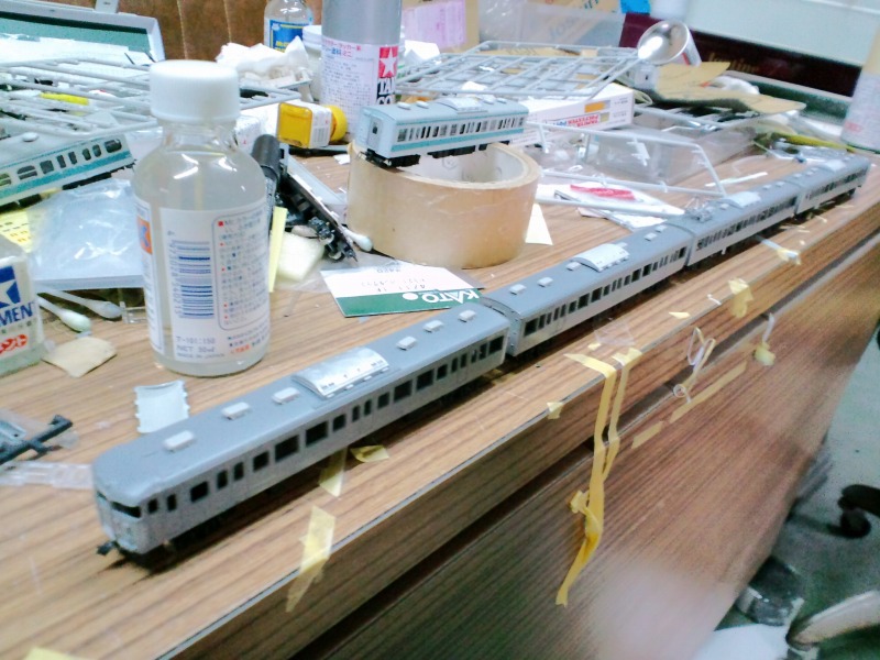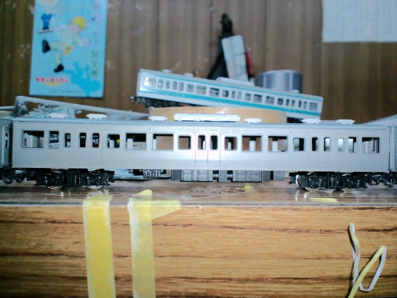 後は屋根をマスキングして車体塗装と屋根機器塗装と仕上げですね。