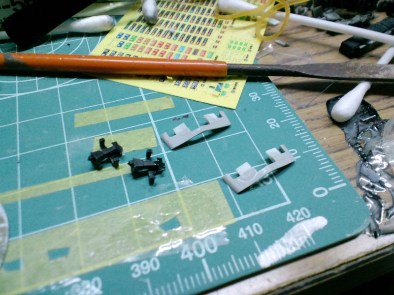 スカートの製作途中の写真。プラ板を足して実車通りの形状を目指しました。