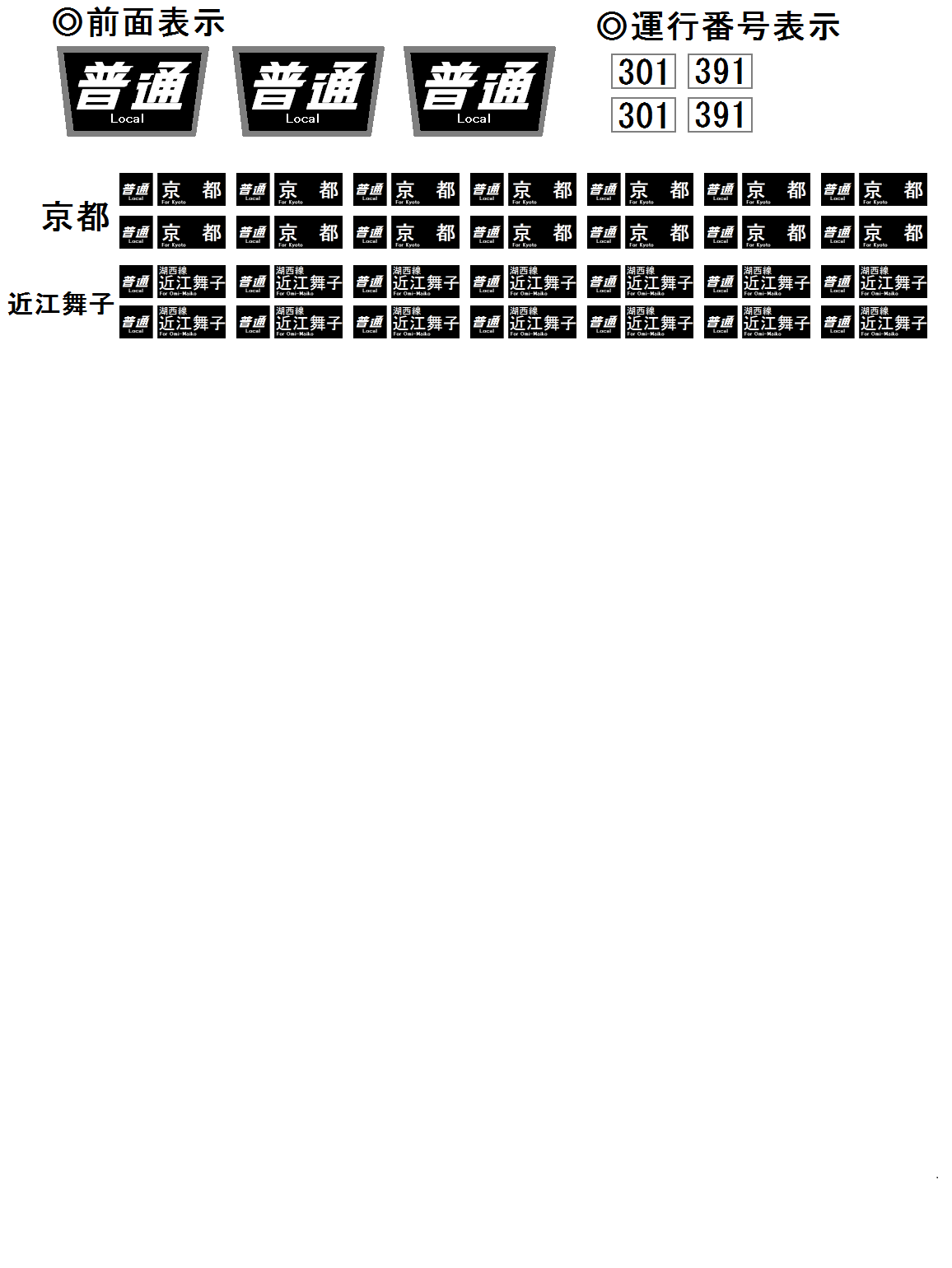 側面幕は自作ステッカーで普通/京都を海側に、普通/湖西線近江舞子を山側に貼っています。