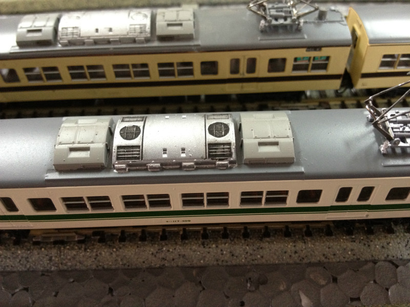 屋根上。KATO117系で一番面倒くさいところです。
