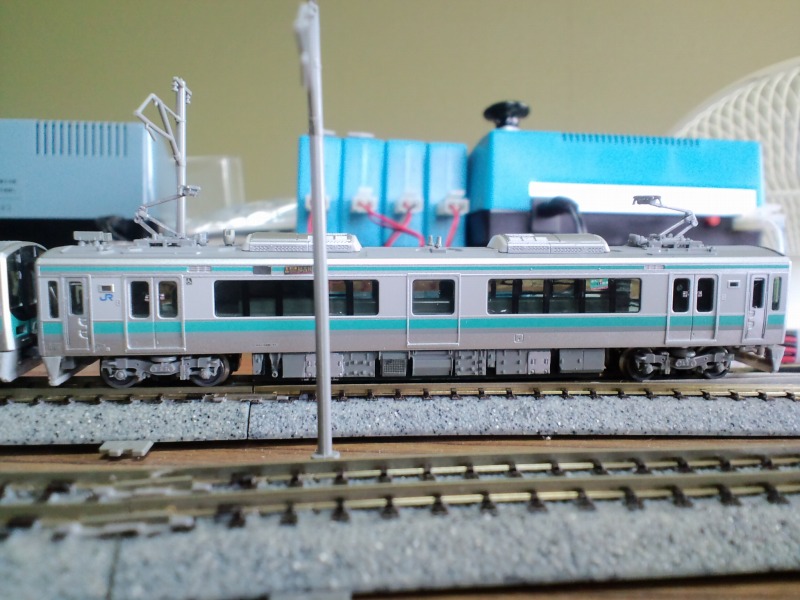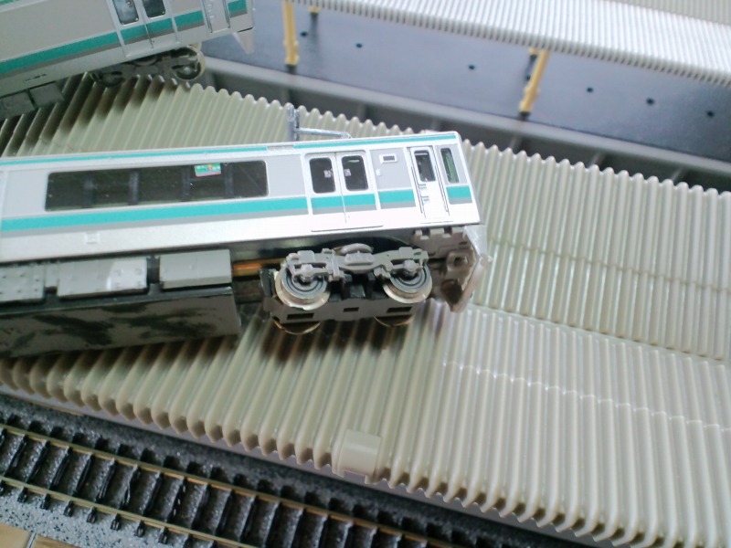 動力車は床下機器や台車の余計なところを黒で塗って目立たなくしてあります。